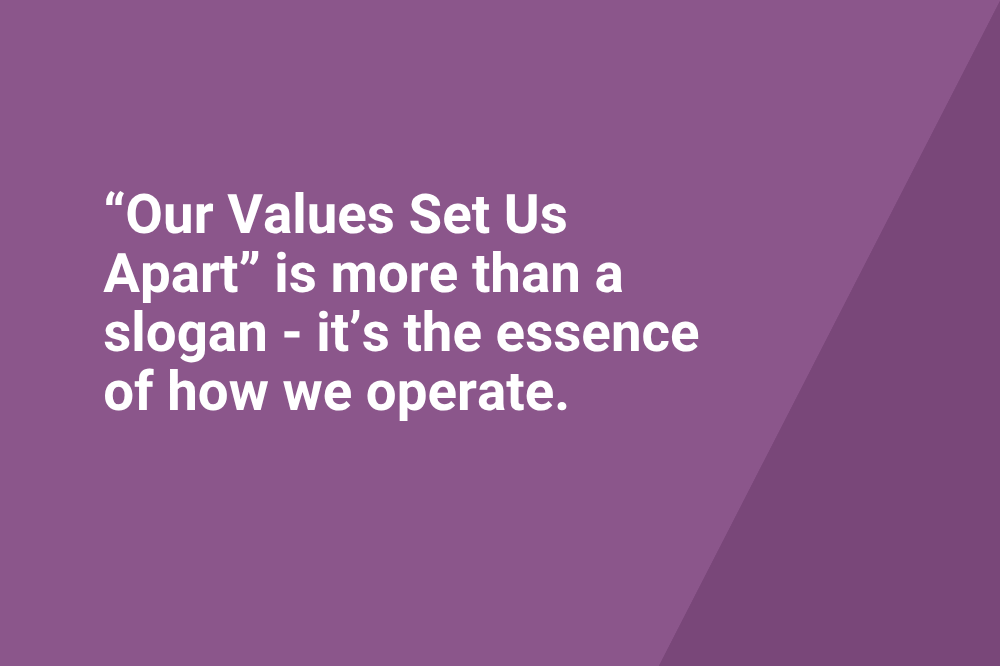 “Our Values Set Us Apart” is more than a slogan - it’s the essence of how we operate. We are excited about this new chapter and look forward to the positive impact these values will have on our company and all those we work with. Together, we will continue to drive excellence, innovation, and success.