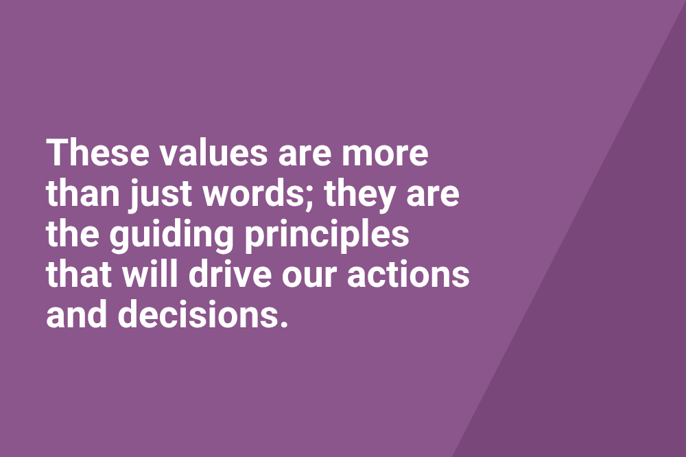 These values are more than just words; they are the guiding principles that will drive our actions and decisions. We believe they will help us: